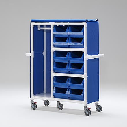 Ce penderie roulante 12 bacs est conçu pour le transport des vêtements suspendus et de linge.