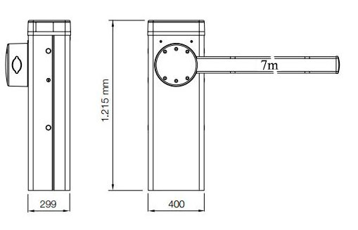 - Barrière pour lisses de 7m, irréversible 230 Vca, moteur 24 Vcc, fût en acier inox.