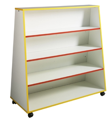 À l’opposé du présentoir, la face rangement intègre quatre niveaux fixes conçus pour accueillir divers ouvrages et matériel pédagogique.