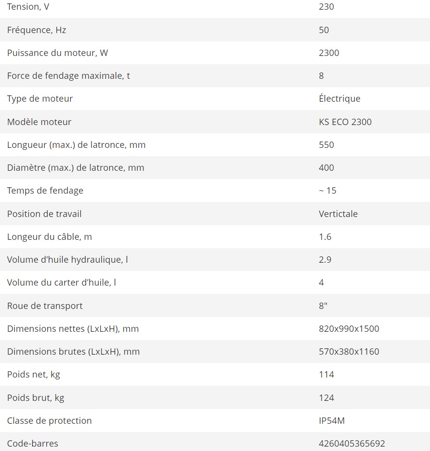 Cette fendeuse à bois est dotée d'un moteur électrique puissant et hautement respectueux de l'environnement.
