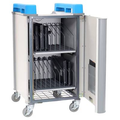 Le chariot protège vos appareils contre les chocs et les basculements grâce à ses compartiments individuels et ses tapis en caoutchouc ventilés, garantissant ainsi leur sécurité pendant le stockage et le transport.