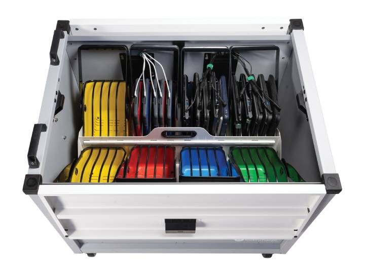 L’accès par le haut simplifie la gestion quotidienne des appareils, permettant une distribution rapide sans avoir à se pencher. De plus, les paniers LocknCharge facilitent le déploiement sécurisé des tablettes et Chromebooks.