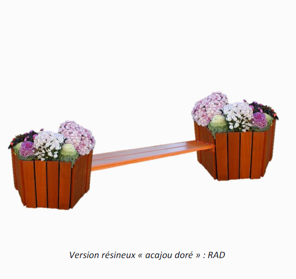 Equipée d'une banquette de liaison entre les 2 jardiniéres créant un design pur.