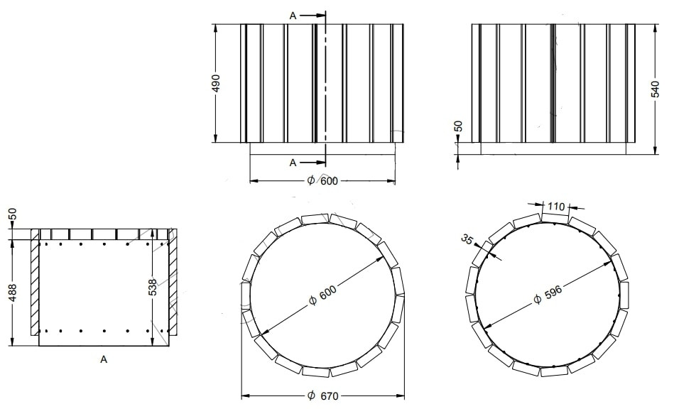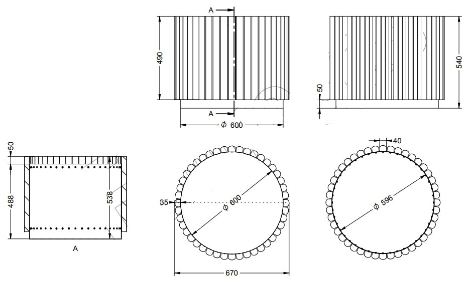 Corps en acier galvanisé Diamètre : Ø 600 mm Hauteur : 540 mm