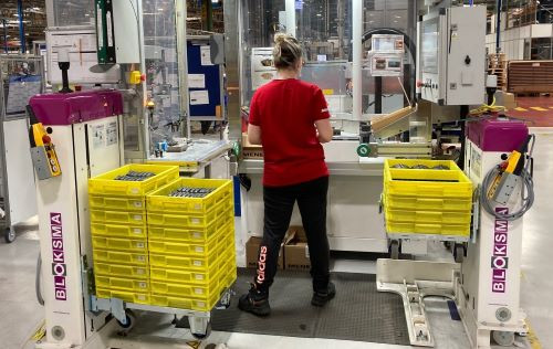 Nos élévateurs Bloksma, dépileurs empileurs de bacs, sont disponibles en version électrique et pneumatique, équipés de capteurs de mise à niveau constant, réglables en hauteur (avec fonction anti-écrasement) et de capteurs de présence d'embases en option.