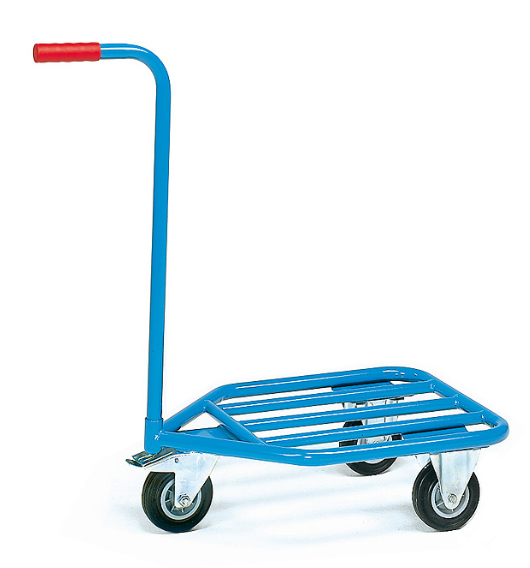Chariot avec poignée amovible, plate fome en tube acier revêtement époxy bleu.