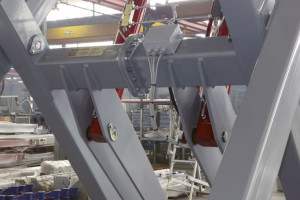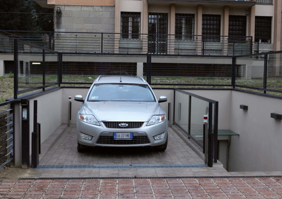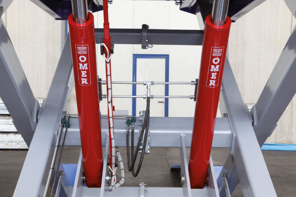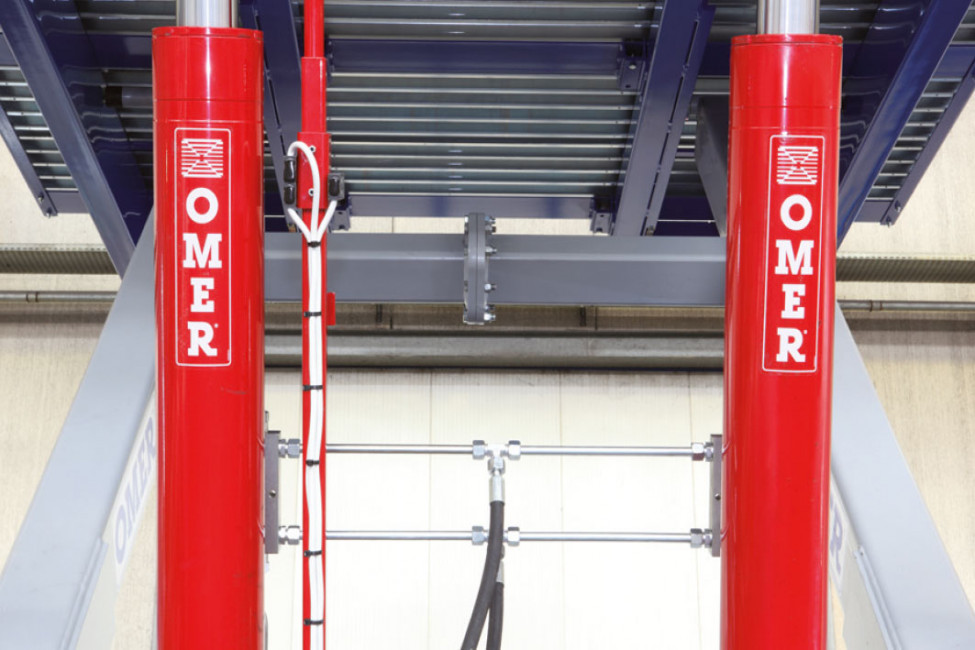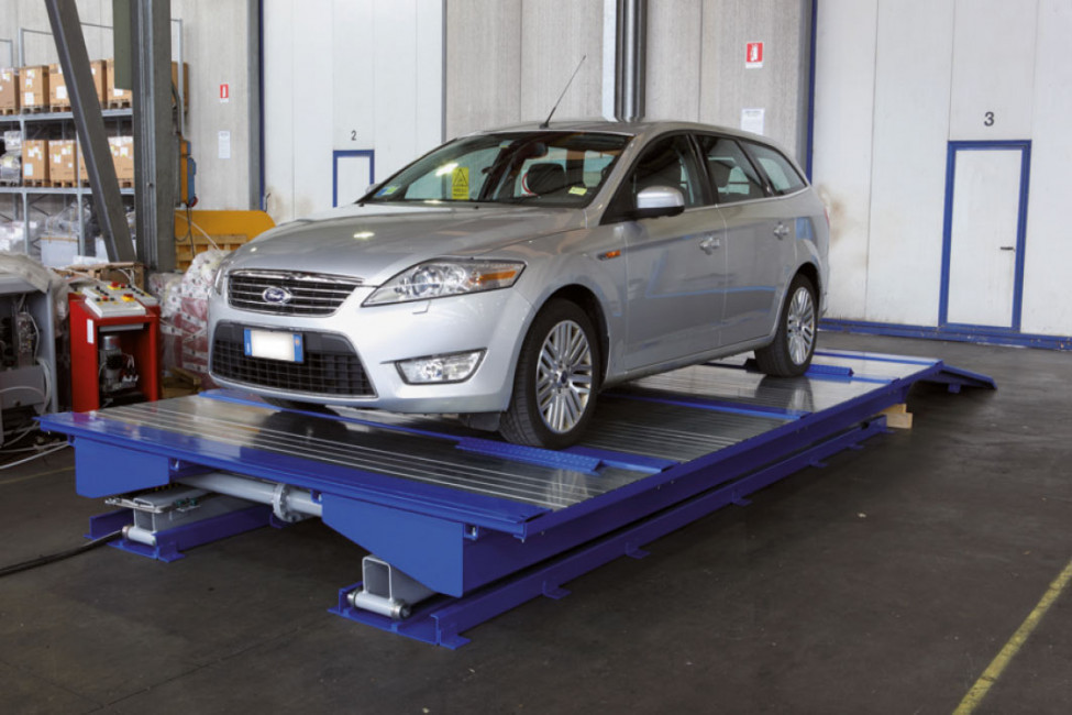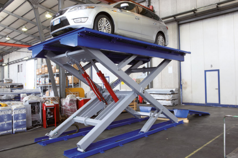 Cet ascenseur de voitures utilise un système de levage à pantographe.