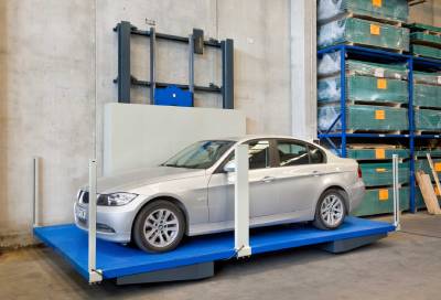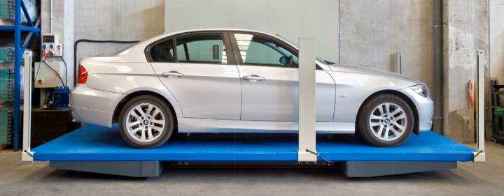 Ce monte-voiture permet de monter ou de descendre une voiture sans effort, même vers un parking souterrain. |