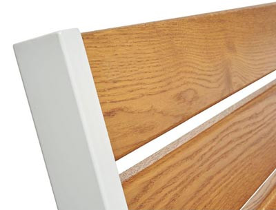 Les lames de l’assise, d’une largeur de 115 mm, sont disponibles en deux finitions esthétiques : lasurée, acajou ou chêne clair, permettant une intégration harmonieuse dans divers environnements.