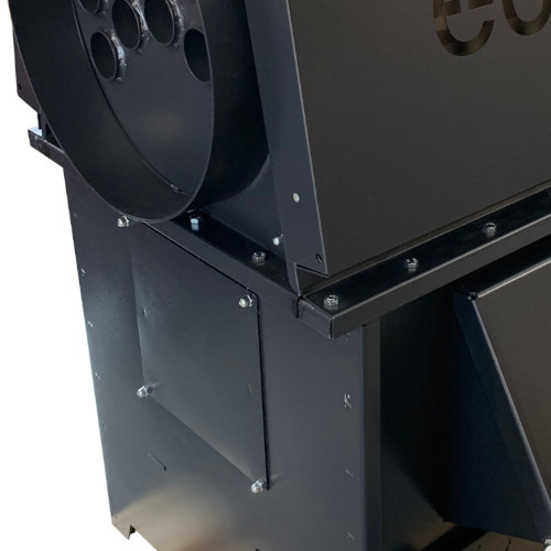 Le chauffage d'atelier au bois ECOPOLY 2 est équipé d'une trappe latérale à gauche permettant l'intégration d'un brûleur à pellet (option) .