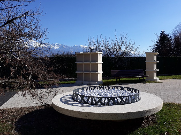 un puit du souvenir permettant de disperser les cendres des défunts.