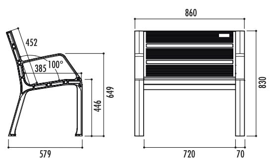 Disponible en quatre longueurs et en versions avec ou sans accoudoirs, ce banc s’adapte parfaitement à divers besoins.