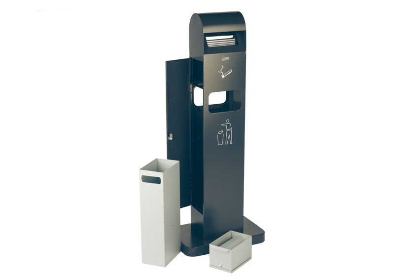 Ce collecteur à déchets avec cendrier est composé de deux compartiments différents et s'adapte à tous les lieux publics.