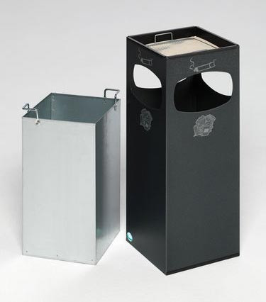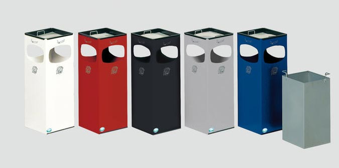 Le cendrier poubelle convivial avec ses 4 ouvertures, pour faciliter l‘accès à la poubelle.