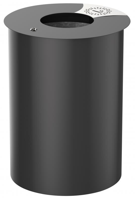 Il est équipé d’une plaque écrase-mégots en inox évitant le dépôt des cendres dans la poubelle.