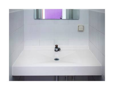 Le plan, la vasque et le dosseret arrière sont moulés en une seule pièce, entraînant les infiltrations d'eau et facilitant l'entretien quotidien.