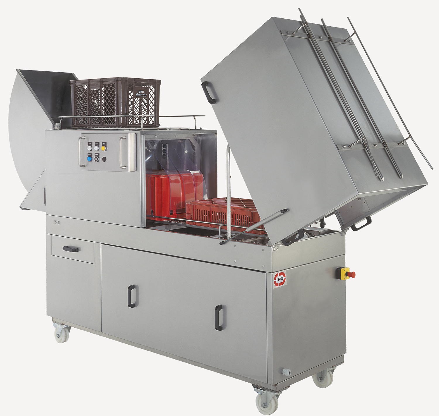 machine laveuse de caisses est composée d'une section principale de lavage et d'une section de rinçage séparée.