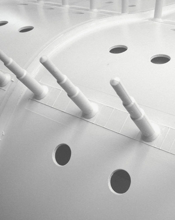 - La pose de ces doigts se fait par rangées, avec des entraxes modulables (25, 30, 35, 40 mm etc ...)
