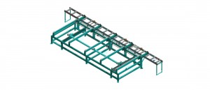Ce convoyeur, relié à 2 machines à folier, permet de reduire au minimum le temps de manipulation des profilés.