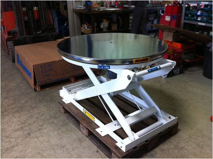 18/10/2019Table élévatrice hmax = 900mm + plateau rotatif pour palettes 120x100 poids max 500kg.
