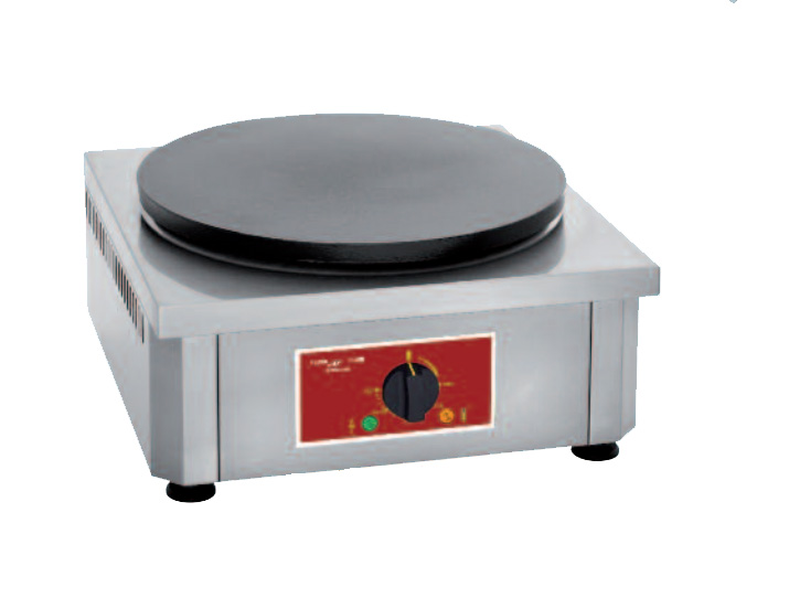 Cette crêpière à gaz dispose d’un thermostat de régulation qui permet de maîtriser le brunissage de vos crêpes.
