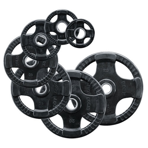 Les disques olympiques sont recouverts de caoutchouc ou fonte pour éviter les éraflures ou les dommages au matériel, aux murs ou aux sols.