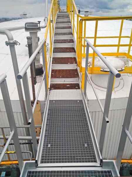 Elles permettant un passage aisé et sécurisé au-dessus des cuves de stockage de produits pétrochimiques.
