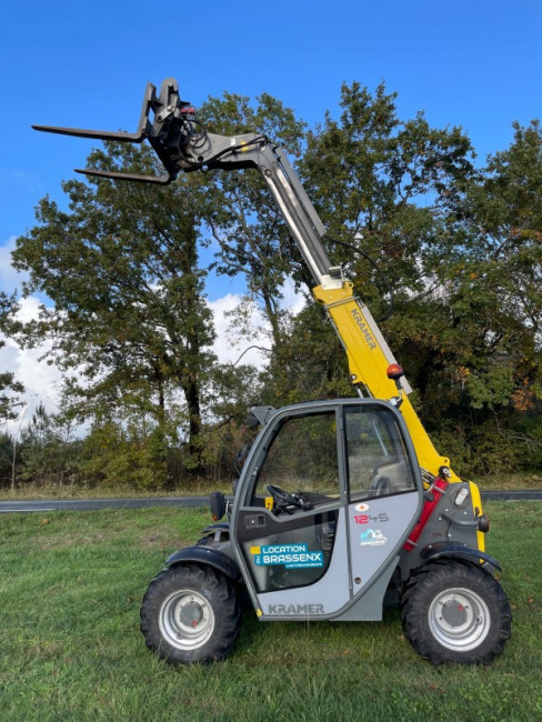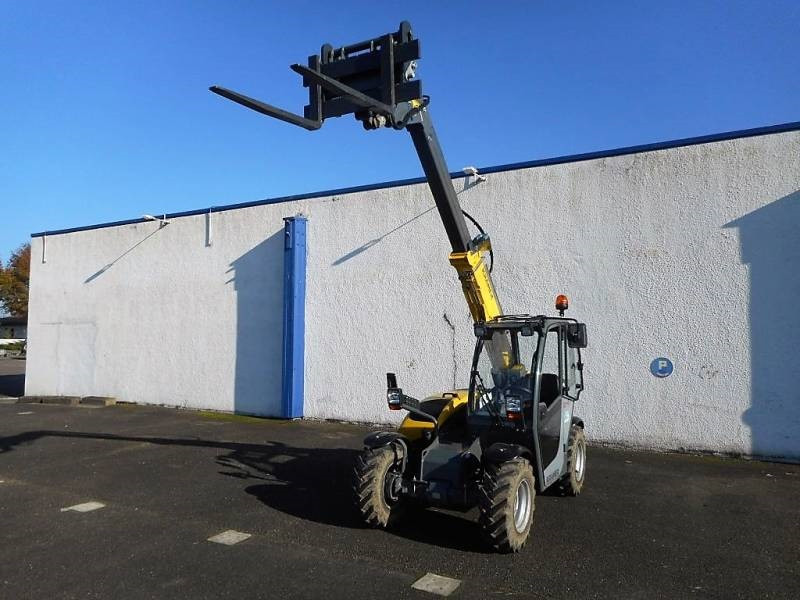Ce mini chariot télescopique en location est un engin de chantier pour les travaux en hauteur.