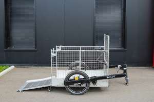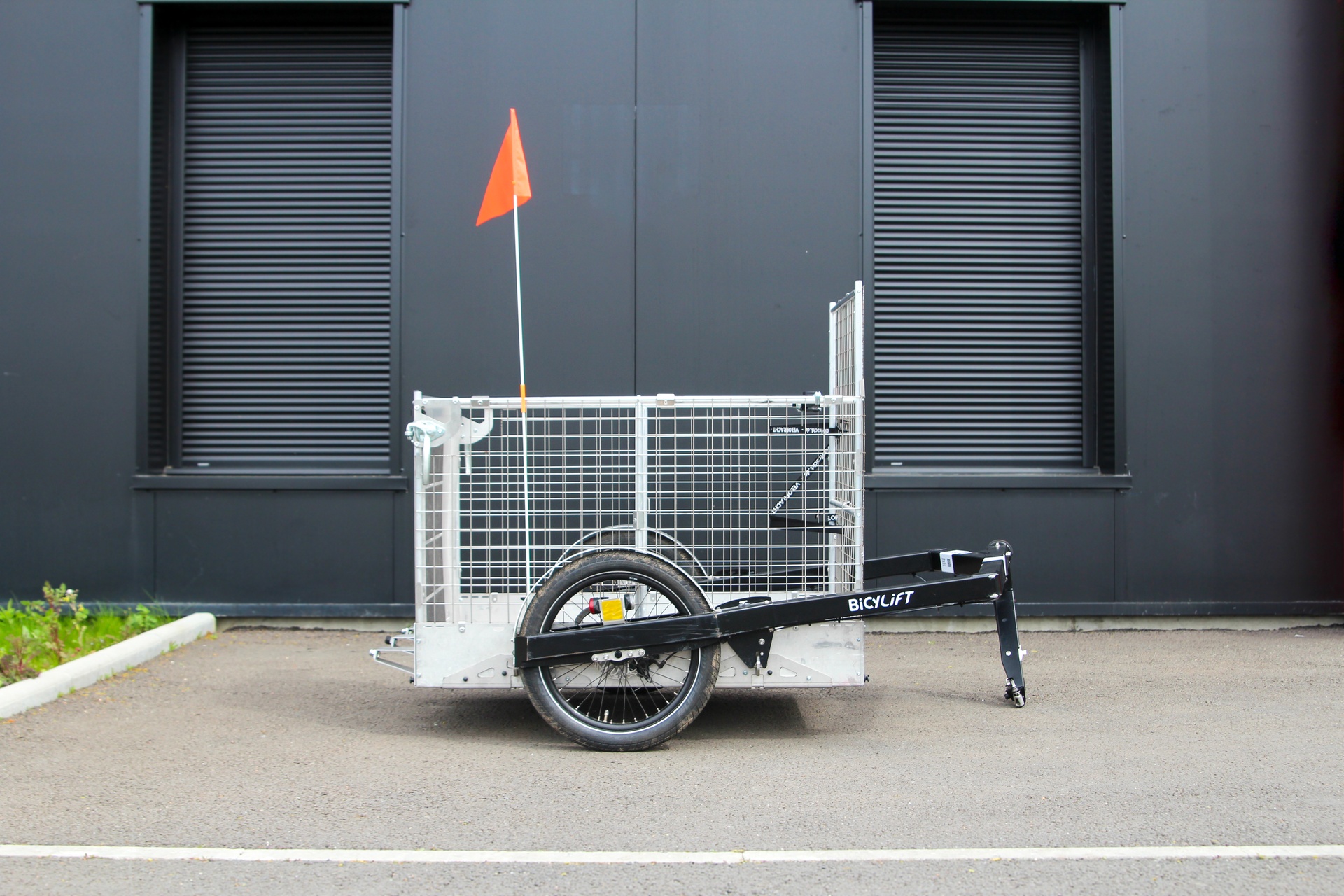 Cette remorque grillagée pour vélo est idéale pour le transport sécurisé de charges diverses, que ce soit pour les courses, le matériel de camping ou les accessoires pour animaux.