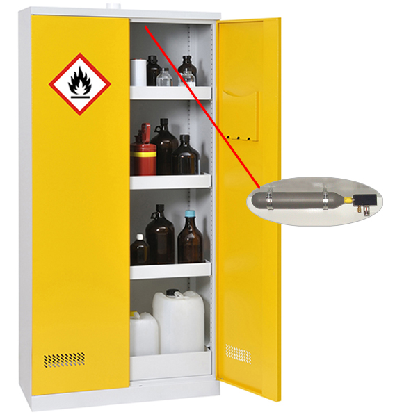 Armoires pour produits dangereux - avec système d'extinction intégré