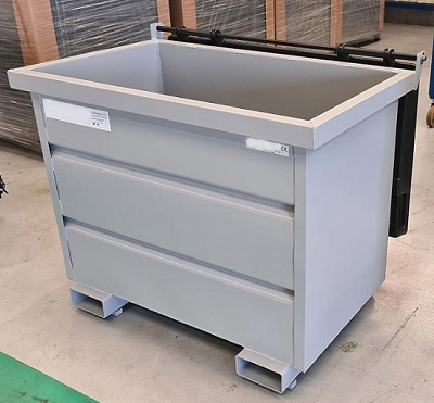 La benne pour chariot à tête rotative est conçue pour le stockage et la manutention des déchets en milieu industriel et artisanal.
