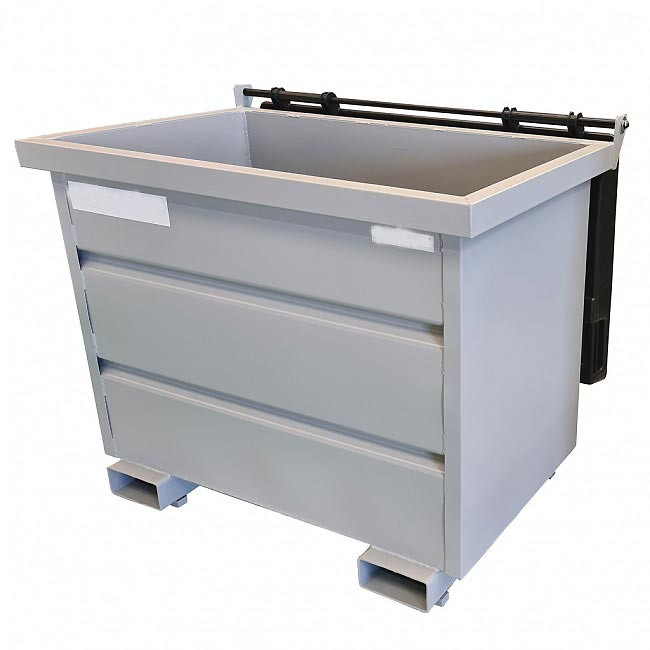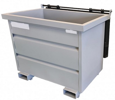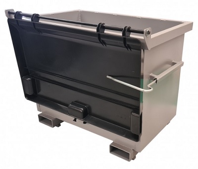 La benne pour chariot à tête rotative avec couvercle (BTR) est spécialement conçue pour la collecte, le transport et la vidange de déchets variés : gravats, aciers, cartons, plastiques, copeaux.