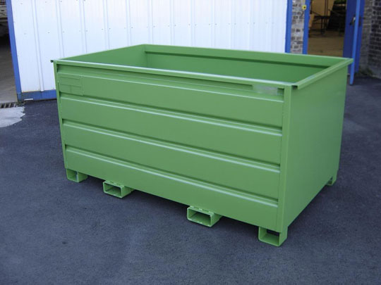 je suis à la recherche de bennes pour chariot élévateur d"un volume d"environ 2m3. Il s"agit d"entropser de l"aluminium en conséquence assez lourd; Il existe des contenants en plastique à ce sujet.