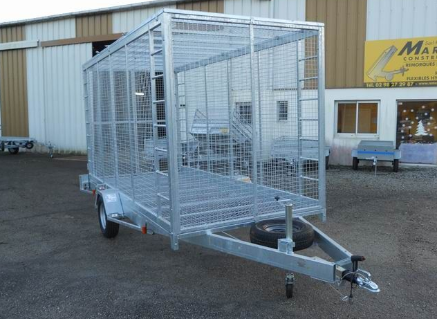Je recherche une remorque plateau avec ridelles grillagées type cage ou remorque paysagiste, ayant les dimensions intérieures utiles suivantes ou s"en rapprochant :