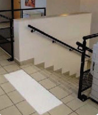 02/12/2013pose de 4 dalles podotactile auto adessif devant escaliers sur du revêtement pvc