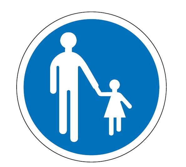 Ce panneau de type B22b, fabriqué en France, indique aux piétons qu'ils sont obligés d'emprunter le chemin à l'entrée duquel ce panneau est implanté.