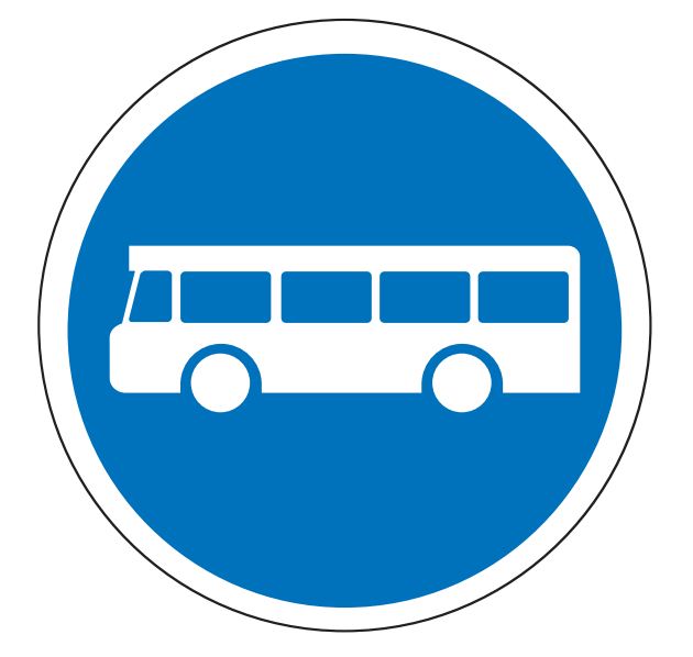 Ce panneau de type B27a, fabriqué en France, indique à l'automobiliste qu'il est à proximité d'une voie reservée aux autobus de transports en communs.