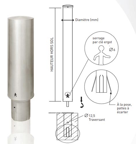 Elle dispose d'un diamètre de Ø 88,9 ou 154 mm (selon modèle) avec une hauteur hors sol de 500 à 1200 mm.