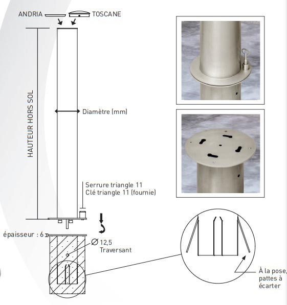 Ce modèle, décliné en plusieurs diamètres et hauteurs, offre une fixation amovible par clé triangle de 11, gage de rapidité d’utilisation et de flexibilité pour la gestion d’accès.