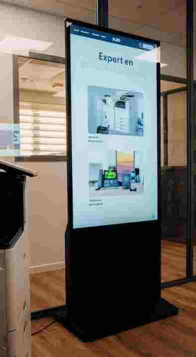 Le design moderne et ergonomique de notre totem tactile lui permet de s’intégrer parfaitement dans différents contextes professionnels :