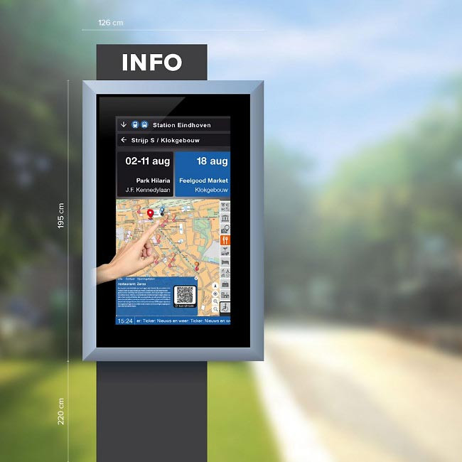 Parfaits pour orienter les passants, ces écrans sont utilisés dans les points de vente, mais aussi dans les communes pour guider les visiteurs en ville.