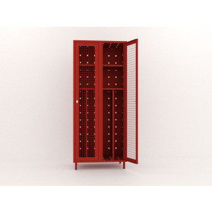 Portes grillagées, cornières acier indégondables en position ouverte et fermée. Maille 25 x 25 mm.