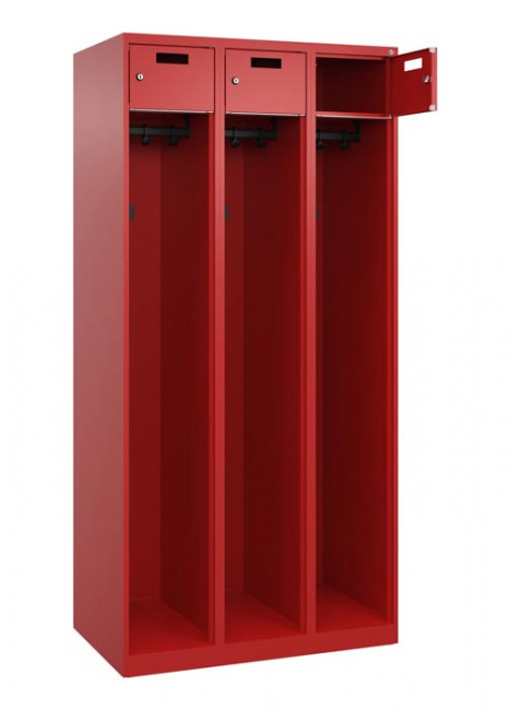 Réf. TC : 726746151Vestiaire pompiers haute penderie 3 Avec Socle 300 x 1850 x 500 RAL 3000 Rouge feu