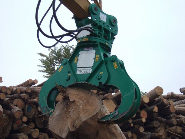Il existe également la pince à bois pour pelles 2 à 25 tonnes ou grue 2 à 40 tonnes, un grappin forestier muni de vérins 250 bars et d'une valve de blocage.
