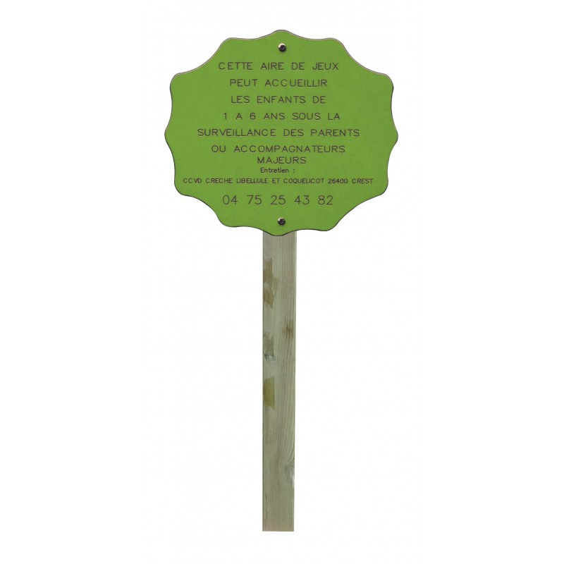 Ce panneau d’avertissement pour aire de jeux est un outil d’affichage réalisé en HPL d’une épaisseur de 10 mm.