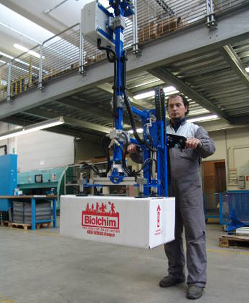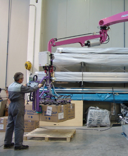 Ce manipulateur est dédié aux cartons et aux produits emballés et assure une manipulation rapide et sécurisée des articles sortant du convoyeur à rouleaux ou du banc en ligne.