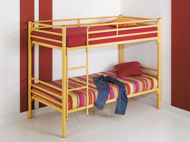Le lit superposé structure métallique s’habille de plusieurs couleurs (vert foncé, bleu clair, jaune, rouge) pour s’intégrer dans tout type d’ambiance.