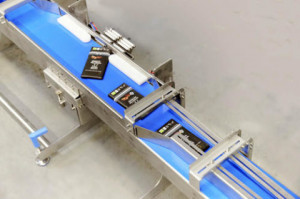 Ce convoyeur avec fonction de ré-orientation d’articles est utilisé pour l’alimentation de systèmes d’emballage, de remplissage, d’étiquetage.