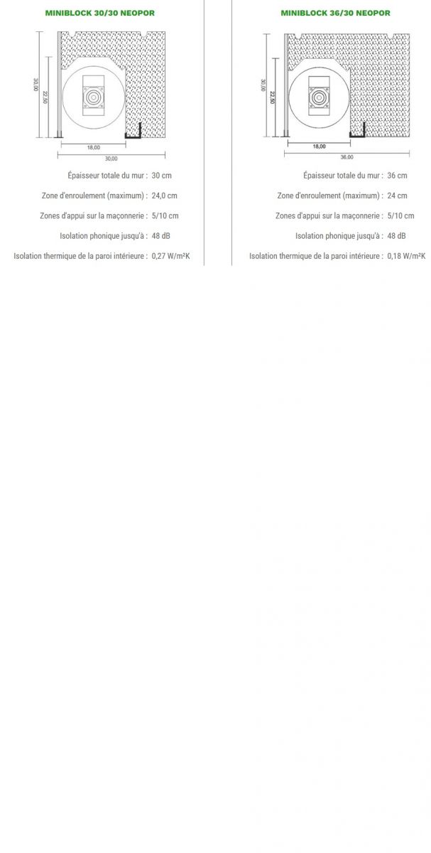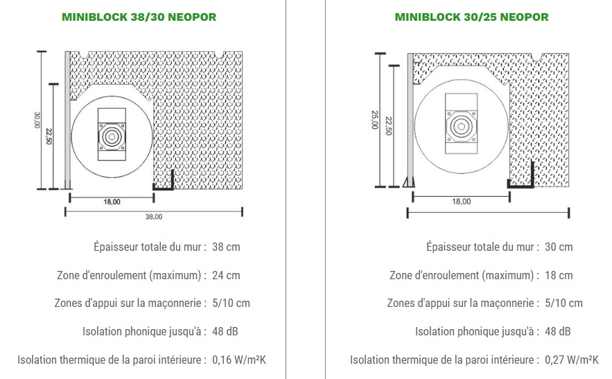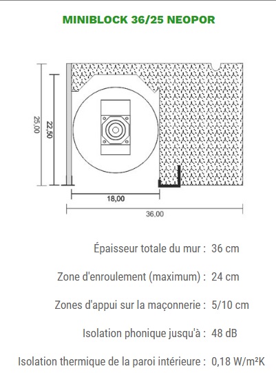 - Hauteur du coffre : 25 et 30 cm; support de crépi en 25/30/34 cm