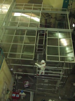 29/06/2011Réalisation d"un enclos de confinement de poussière. Enclos de 8pi par 10pi. demandant une porte battante double avec ouverture de 8pi et une porte d"homme. Système d"aspiration fait sur le dessus.
